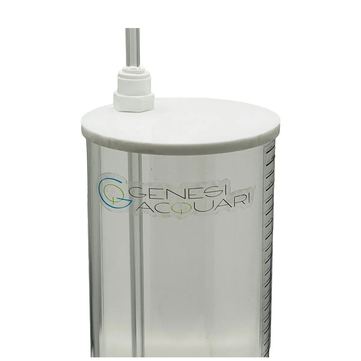 Contenitore di liquidi per metodo balling per la gestione con pompa dosometrica dell'acquario marino, prodotto in acrilico trasparente per controllare il livello dei liquidi.