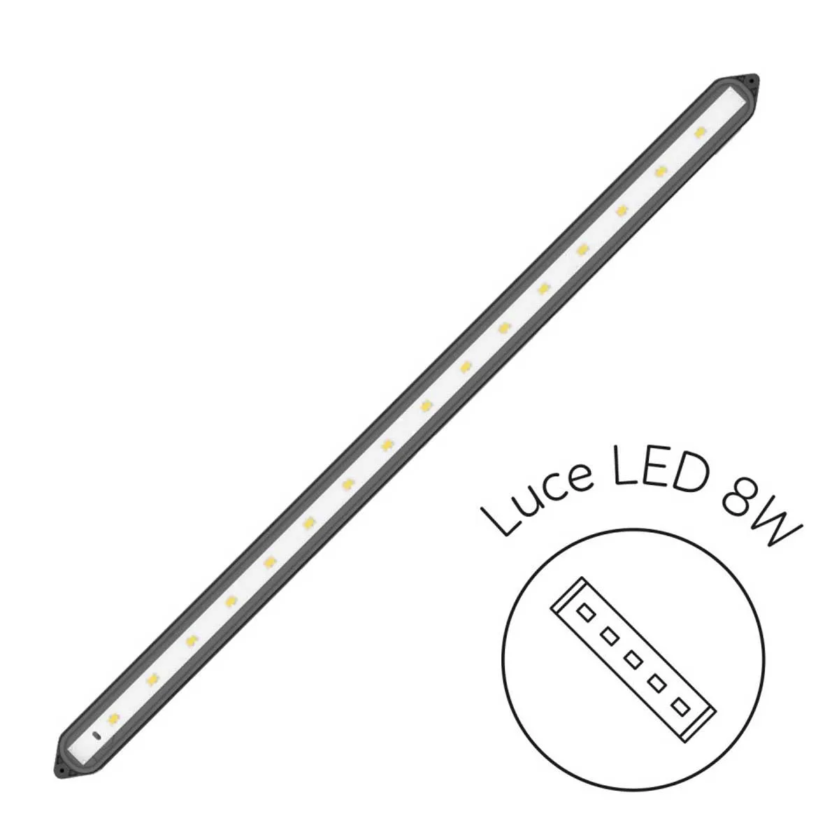 - Illuminazione LED bianca da 8 W (16 LED × 0,5 W – 8500 °K).