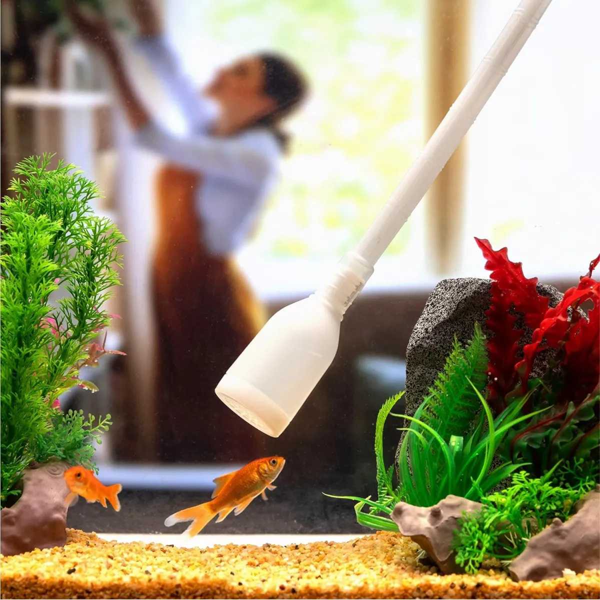 Pulizia Efficace: Ideale per il cambio dell'acqua e la pulizia del substrato, questo sifone permette di rimuovere i detriti accumulati nel ghiaietto, mantenendo l'ambiente acquatico sano e pulito per i vostri pesci.