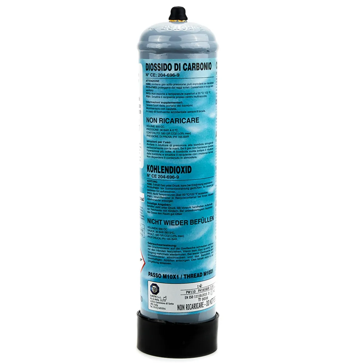 Bombola CO2 usa e getta disponibile in formato da 600gr o 1200gr di anidride carbonica