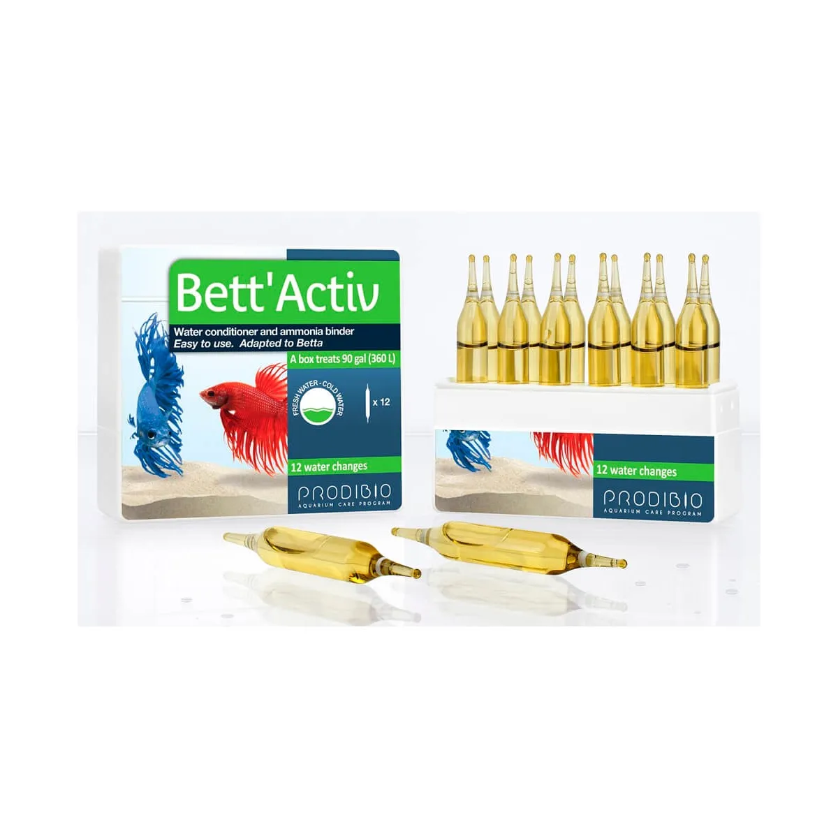 Prodibio Bett’Activ è un biocondizionatore per pesci Betta o combattenti, rende l'acqua di rubinetto sicura e priva di sostanze tossiche, cosi da poterla usare in acquario per Betta senza alcun timore.