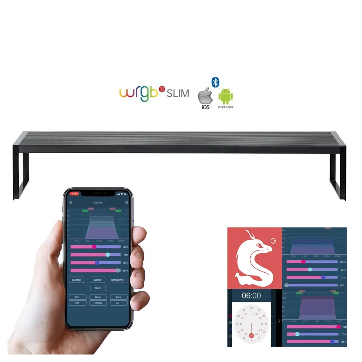 Questa plafoniera si distingue per il suo design slim, che si integra perfettamente sopra l'acquario senza essere invasiva. Il design minimalista e le linee sottili della WRGB II SLIM offrono un'illuminazione ottimale senza compromettere l’estetica del tuo setup. È ideale per acquari di dimensioni piccole e medie, e i modelli disponibili permettono di trovare la soluzione giusta per acquari.