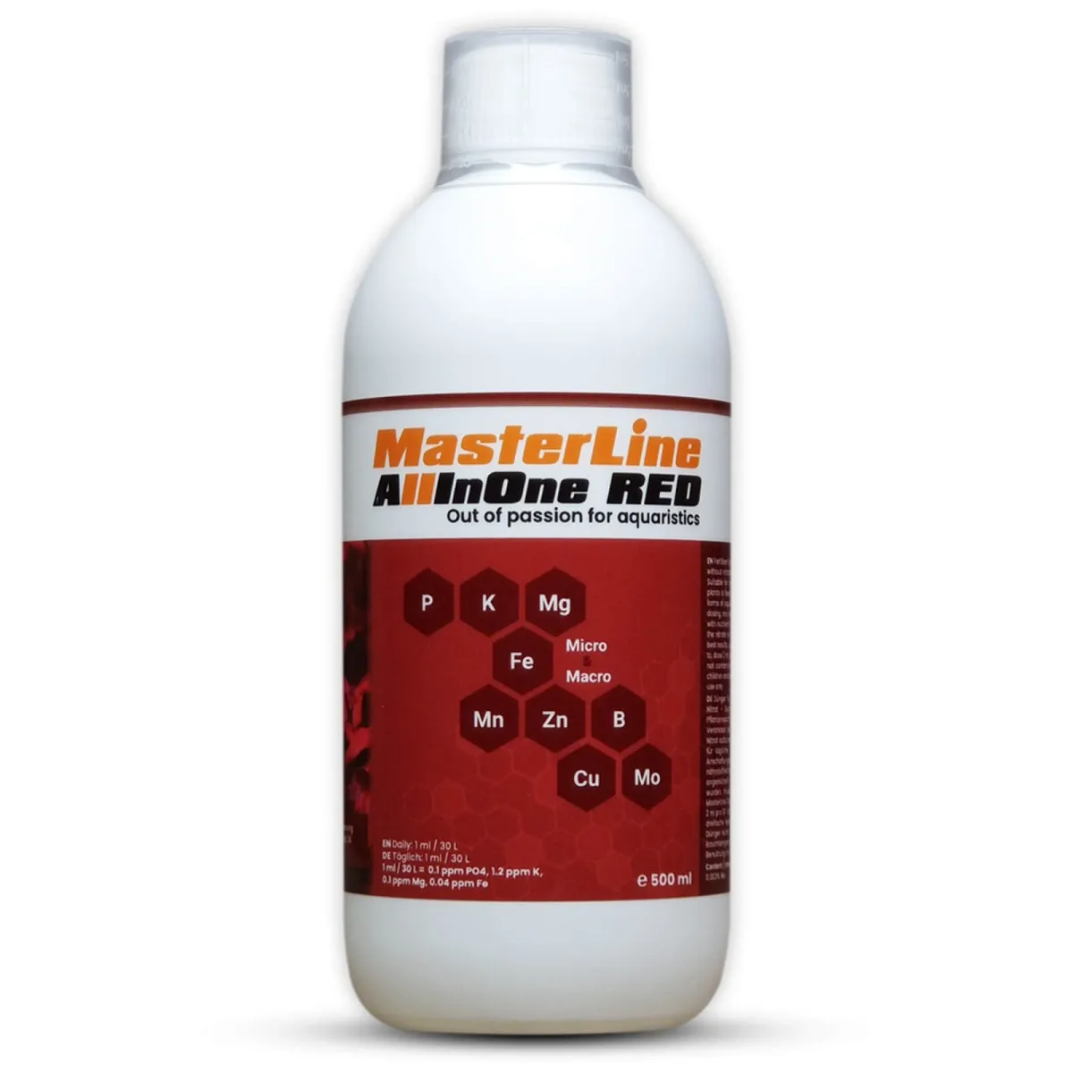 MasterLine AllInOne Red è un fertilizzante completo specificamente formulato per valorizzare le piante ornamentali a foglia rossa negli acquari. Contiene tutti i micro e macronutrienti necessari, tranne i nitrati, rendendolo ideale per acquari con fauna abbondante o con substrati già ricchi di nutrienti.