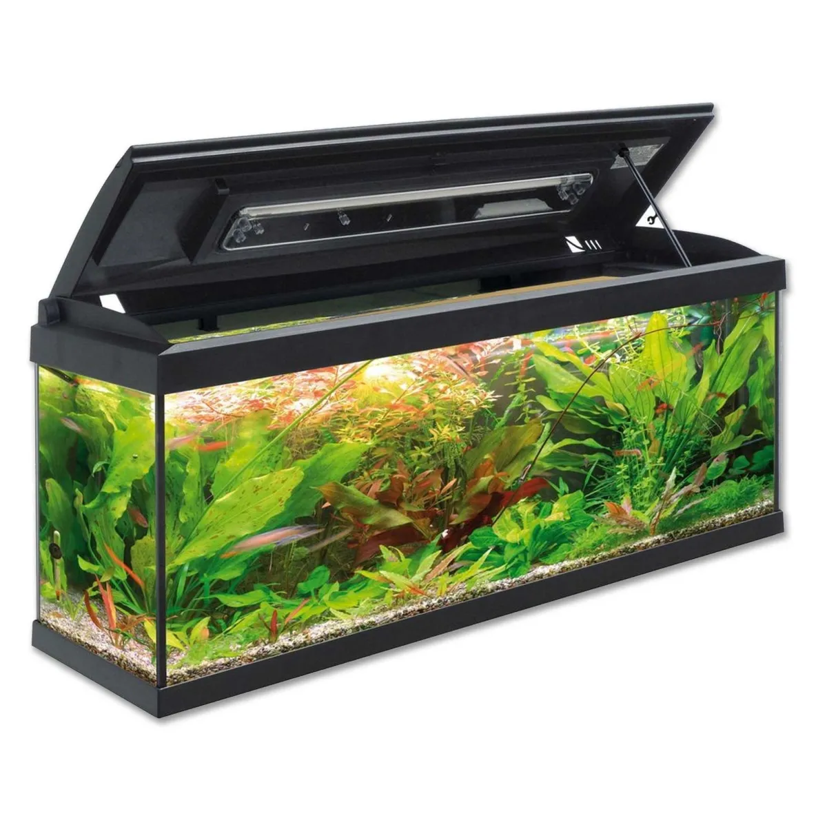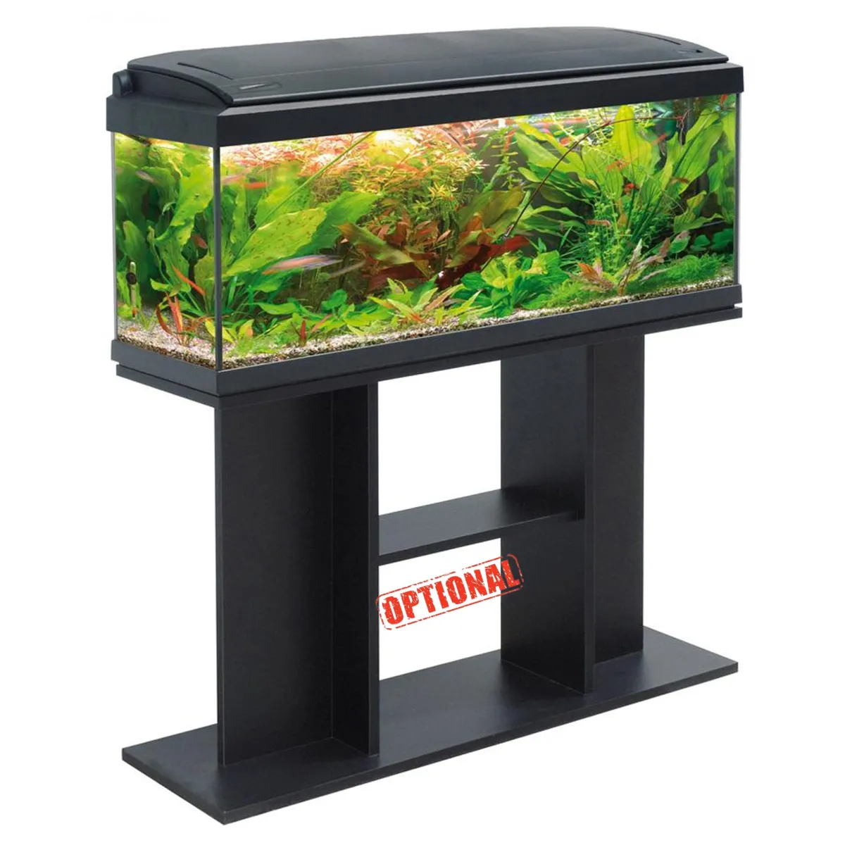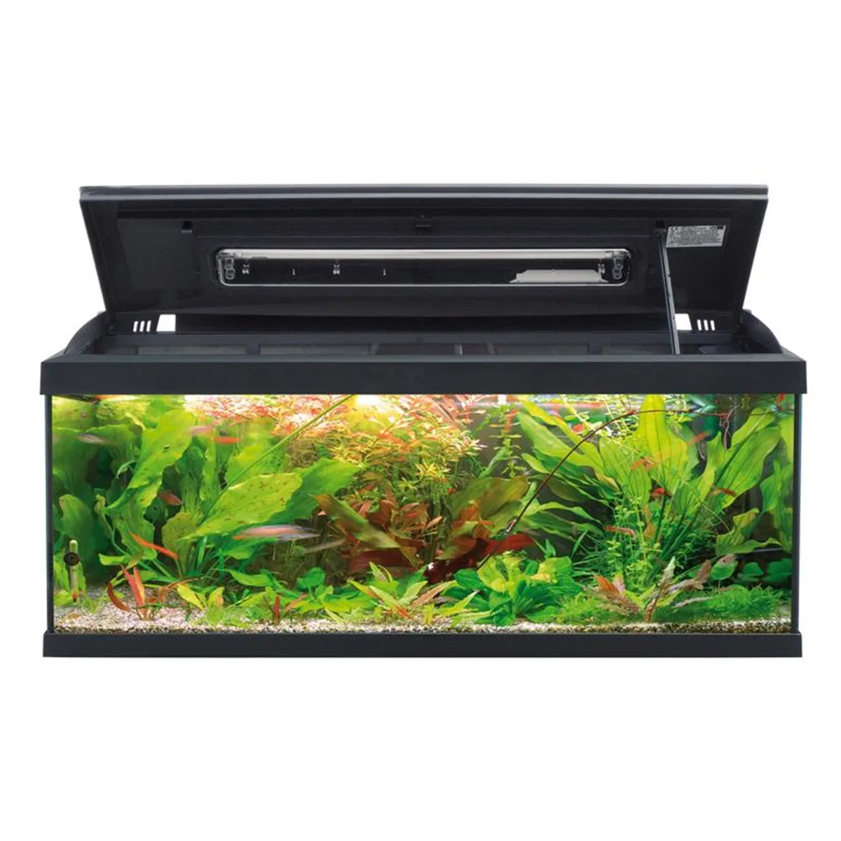 Acquario in vetro completo di coperchio plastico, sistema di illuminazione a LED da 12 W, filtro biologico, pompa di ricircolo e termoriscaldatore da 100 W