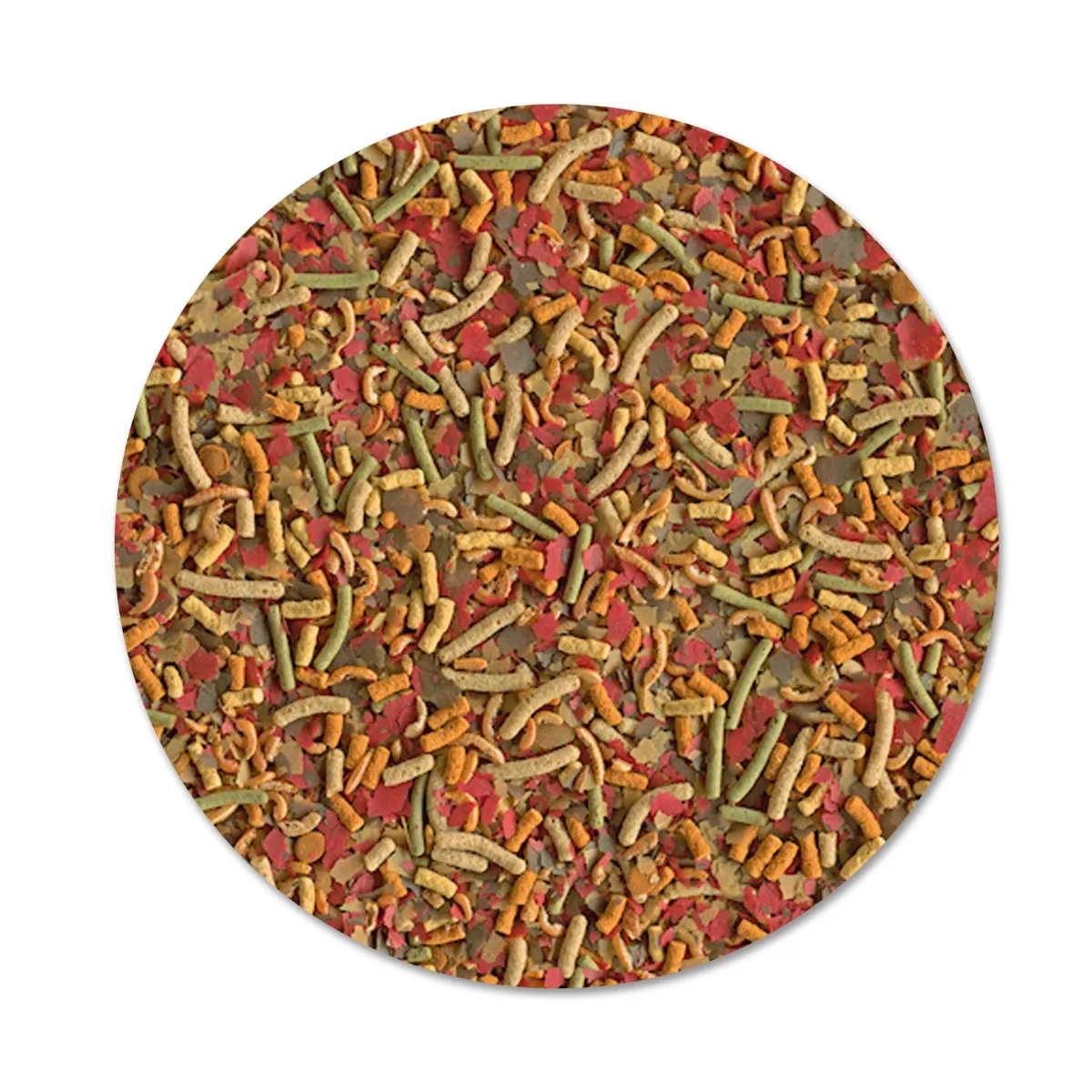 Speciale miscela dei migliori fiocchi, stick, tavolette e Gammarus, adatta alle abitudini alimentari di tutti i tipi di pesci da laghetto.
