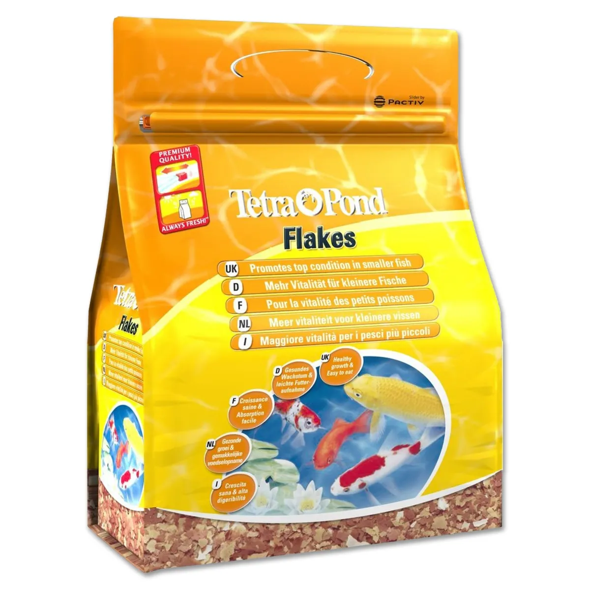 - Il pregiato sacchetto riciclabile protegge il cibo contro influssi nocivi, quali la luce solare, l’aria e l’umidità. In questo modo, i componenti importanti vengono rispettati e si conserva la freschezza del cibo affinché i pesci possano avere il migliore nutrimento possibile.