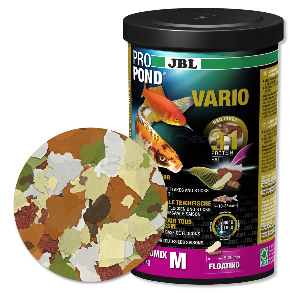 JBL ProPond Vario è un mangime per tutti i pesci da laghetto in un menù composto da fiocchi e sticks galleggianti. Carpe Koi e pesci da giardino gradiranno questo cibo pensato per essere usato in tutte le stagioni altamente digeribile e con un rapporto tra proteine e grassi di 3 a 1.