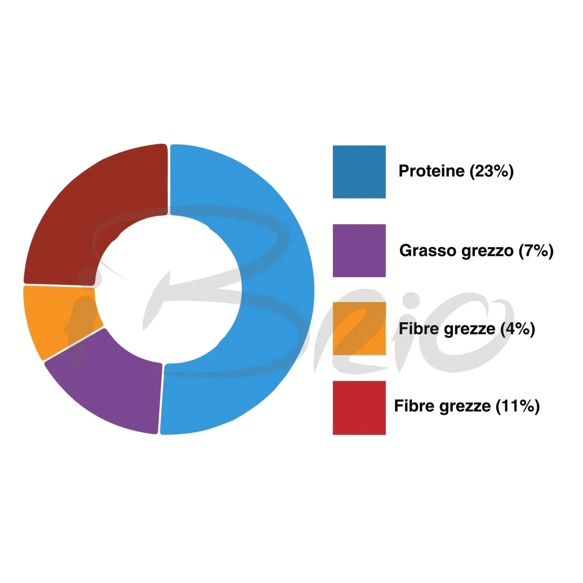 - Farina di: granoturco, frumento, salmone, riso, gamberetti e alghe marine