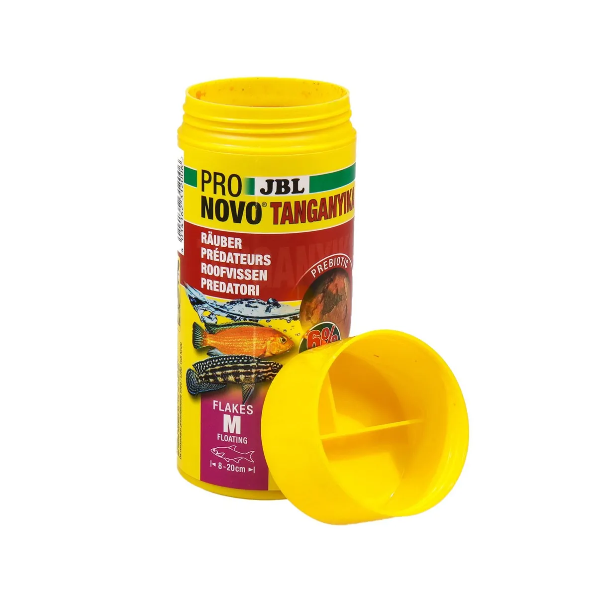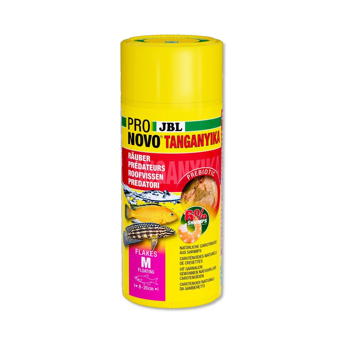 Il JBL Pronovo Tanganyika Flakes M è il mangime perfetto per i ciclidi predatori di dimensioni comprese tra 8 e 20 cm provenienti dai laghi Malawi e Tanganica.