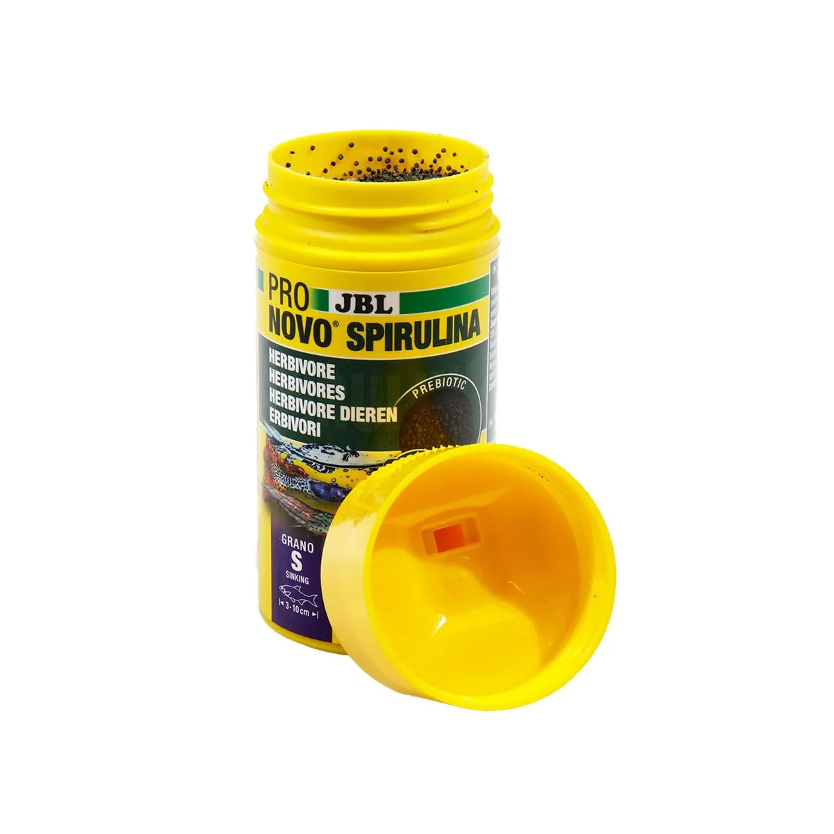 JBL Pronovo Spirulina Grano S 100 ml - Granuli vegetali con spirulina per pesci d'acquario e gamberetti da 3-10 cm