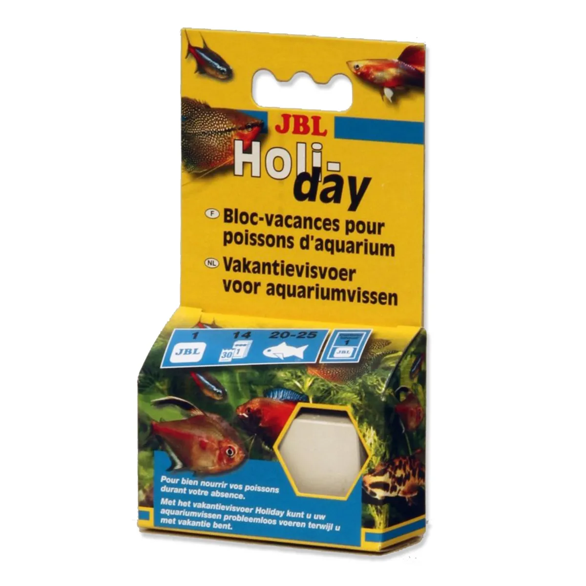 JBL Holiday, alimento per pesci d'acquario è stato sviluppato per fornire un adeguato nutrimento ai pesci d’acquario durante i periodi lunghi di vacanza lontano da casa.