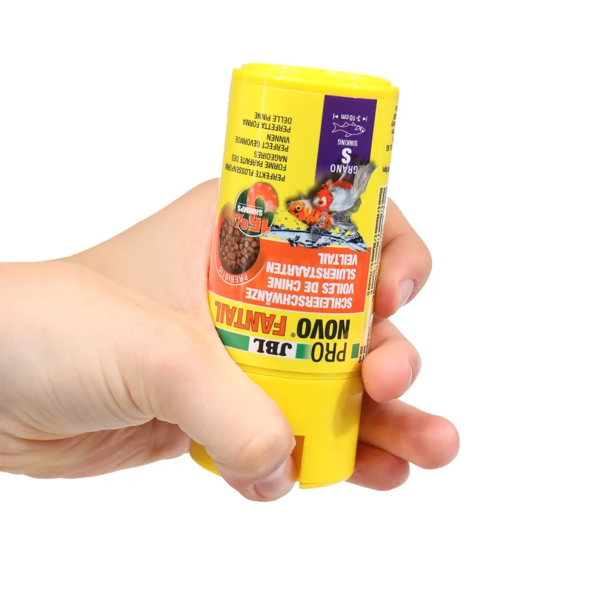 - Barattolo sigillato e dosatore click: Il mangime è confezionato in un barattolo sigillato e riciclabile, dotato di un pratico dosatore click per una distribuzione precisa e senza sprechi.