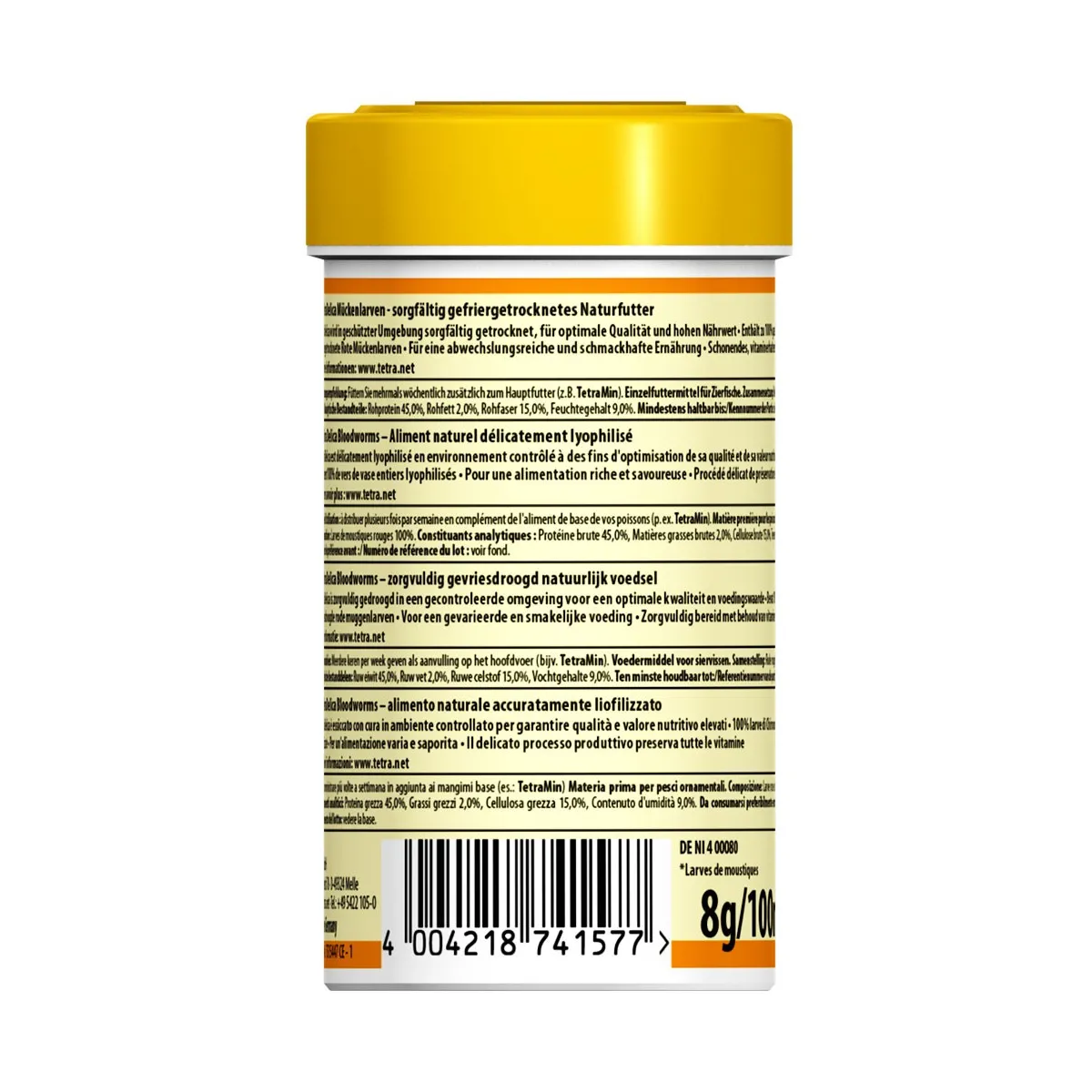 Contiene il 100% di Chironomus (larve rosse di zanzara) liofilizzati.