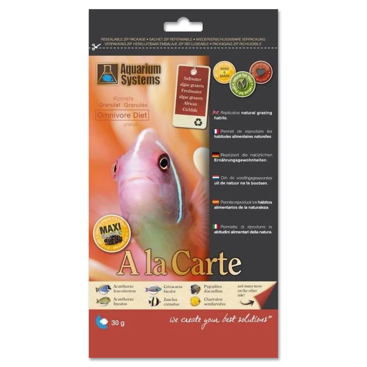 Aquarium Systems A la Carte Omnivore Diet Maxi granules 30g Mangime in granuli per pesci onnivori d'acquario