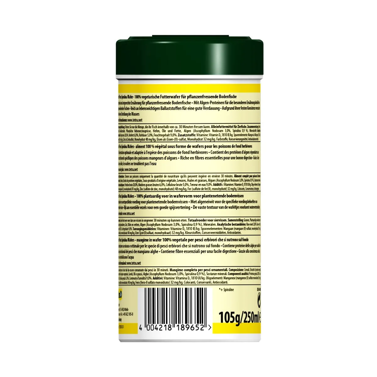 Il mangime Tetra Pleco Spirulina Wafers offre una nutrizione ottimale per i pesci erbivori che si nutrono sul fondo dell'acquario. La formula contiene una significativa percentuale di Spirulina, perfetta per soddisfare il fabbisogno nutrizionale specifico dei pesci che si alimentano di alghe. Questo mangime è anche ricco di fibre essenziali, promuovendo una digestione sana nei tuoi pesci.
