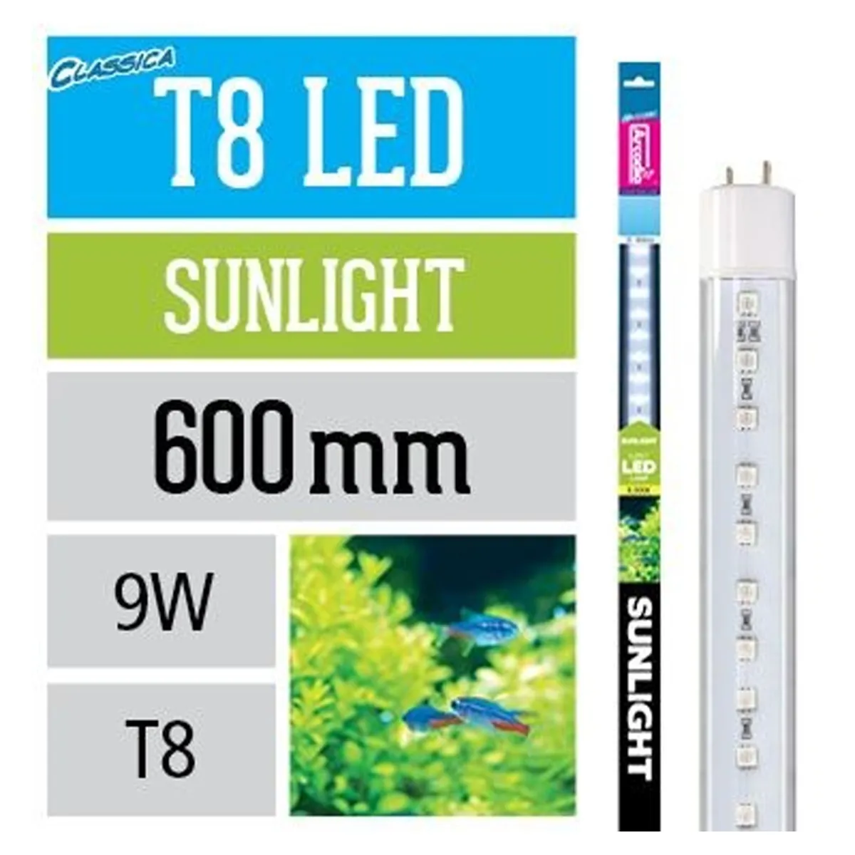 Le lampade LED T8 Classica integrano una sorgente luminosa a LED racchiusa in un involucro tipo le lampade fluorescenti tradizionali. I chip LED sono impermeabili all'interno di un obiettivo chiaro, permettendo alla luce naturale di inondare al massimo l'acquario.