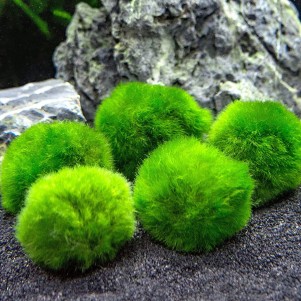 Marimo moss è un muschio per acquario in forma sferica, molto semplice da allevare chiamato anche Cladophora. E' possibile anche tagliarla e incollarla su rocce per creare paesaggi molto naturali.