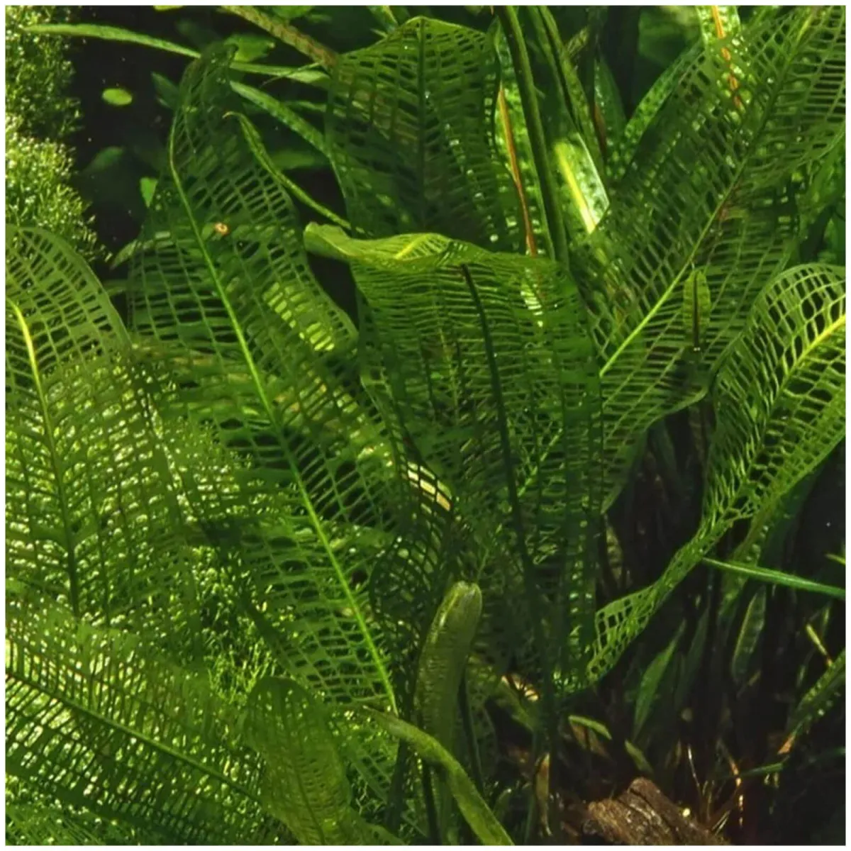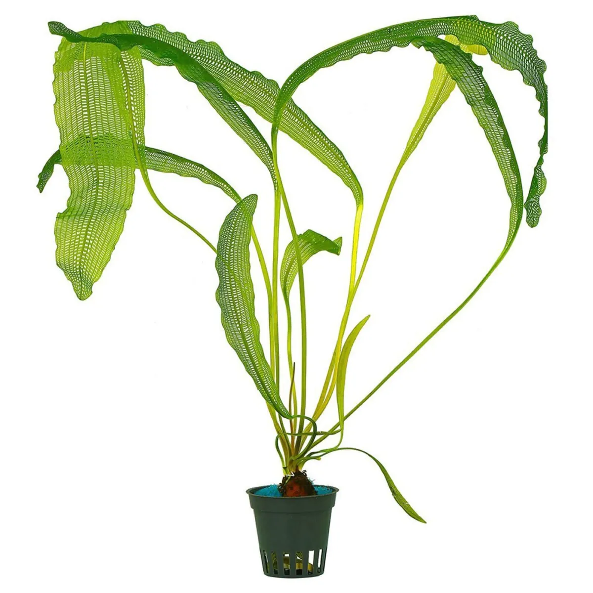 Aponogeton madagascariensis var. henkelianus è una delle piante acquatiche più affascinanti e difficili da coltivare. Proveniente da Madagascar, Mauritius e le Comore, si distingue per le sue foglie reticolate e il portamento elegante che può raggiungere i 65 cm di altezza.