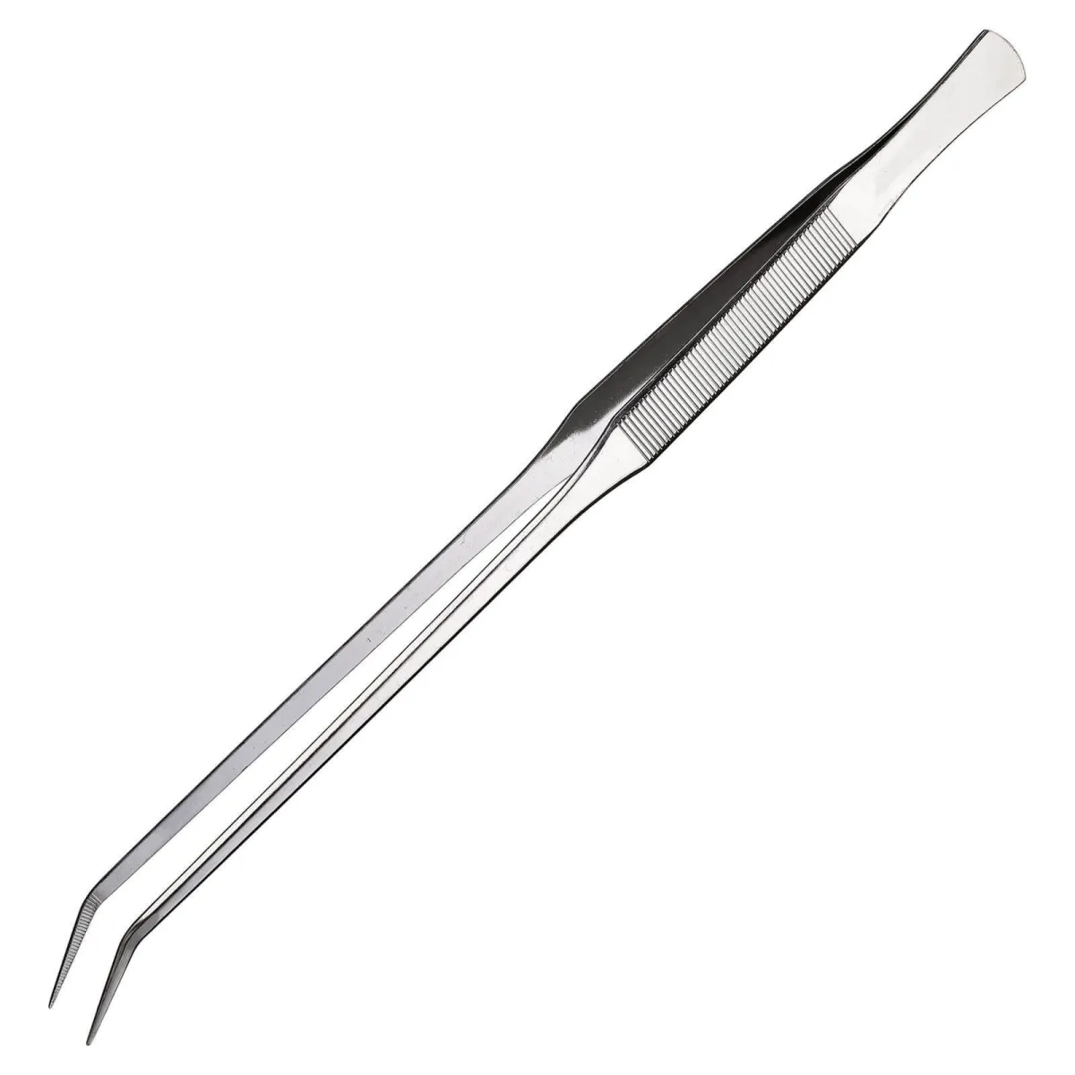 Pinza a punte curve da 30 cm in acciaio ideale per acquari alti. Per un inserimento professionale di piante acquatiche, punte con scanalature per non danneggiare le piante.