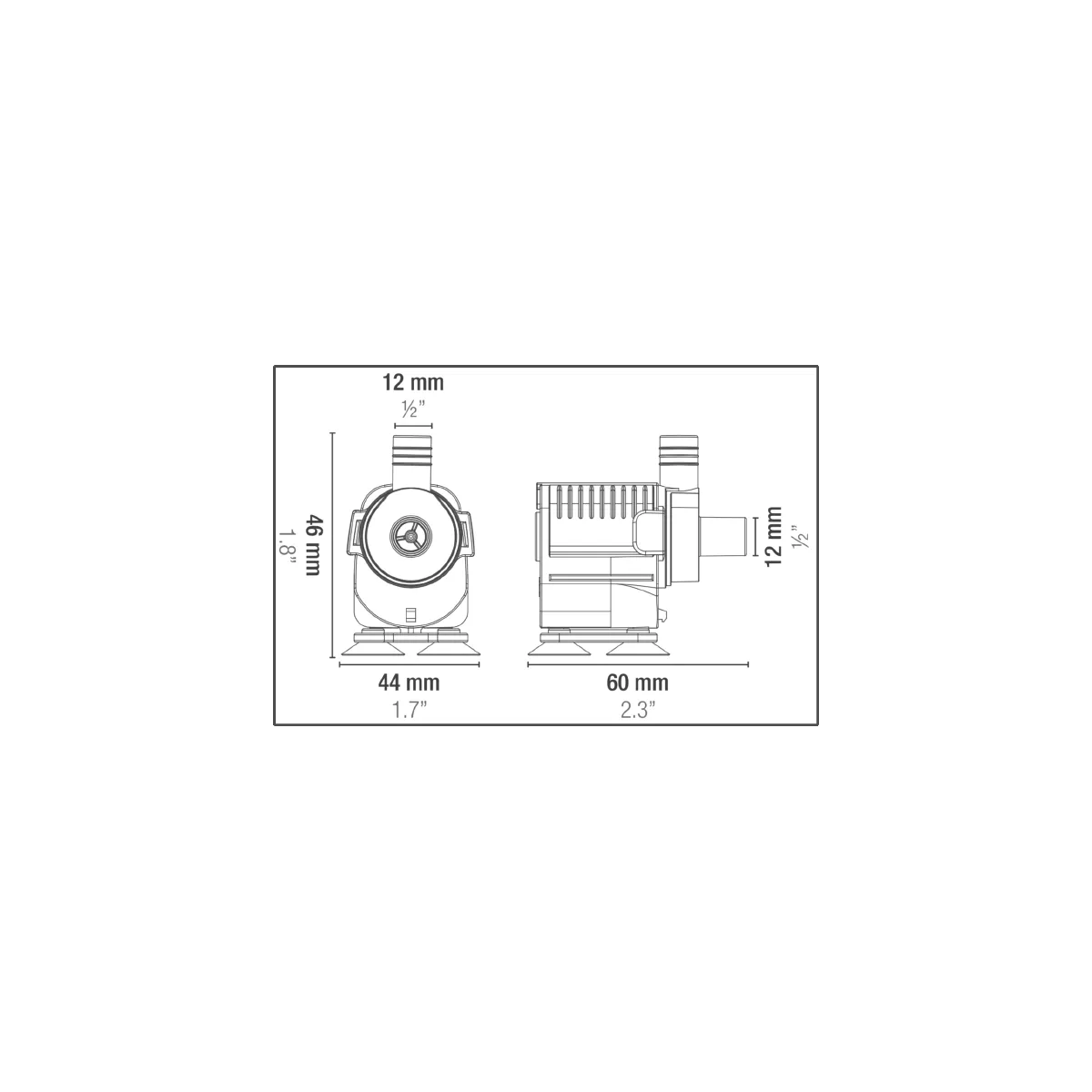 Connettività: Dotata di mandata ed uscita da 12mm, la SYNCRA NANO si integra agevolmente in qualsiasi sistema di acquario, garantendo una connessione affidabile e senza perdite.