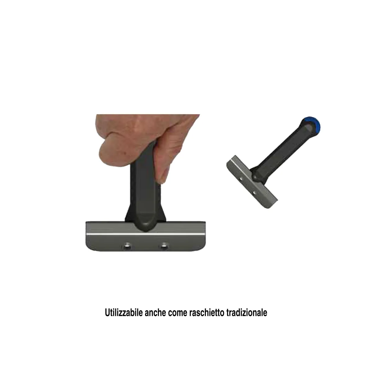 Nel caso di vetri molto sporchi con alghe e sedimenti abbastanza vecchi magari con alghe calcaree rosse molto spesse, è preferibile dotare il portalametta grande della speciale lama in acciaio inossidabile fornita.