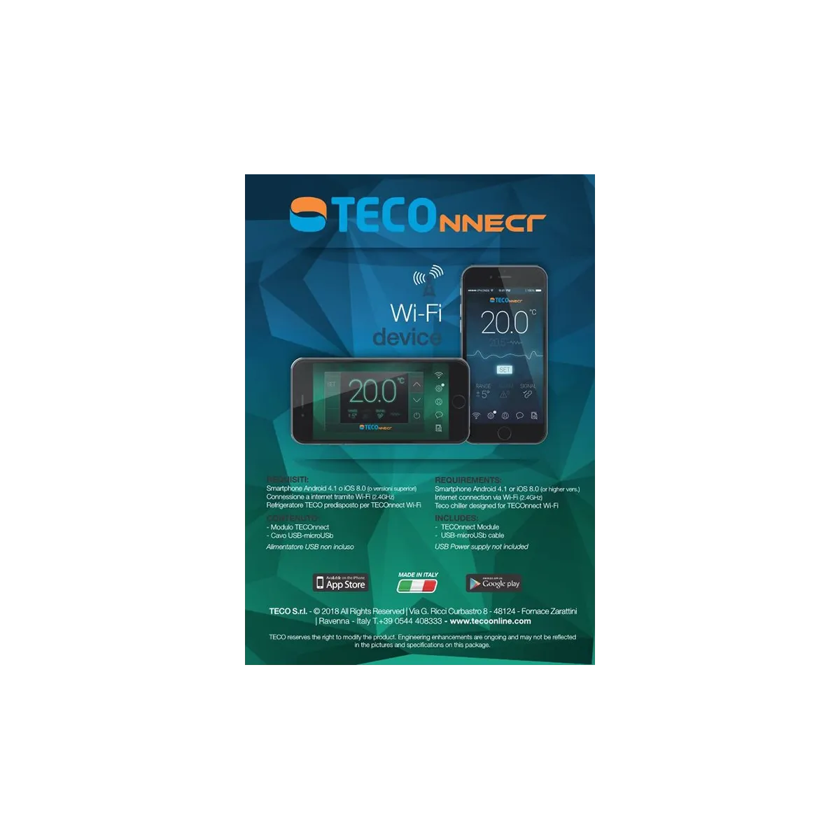 I teco Wi-fi hanno bisogno del Teconnect e dell App per il funzionamento in Wi-fi