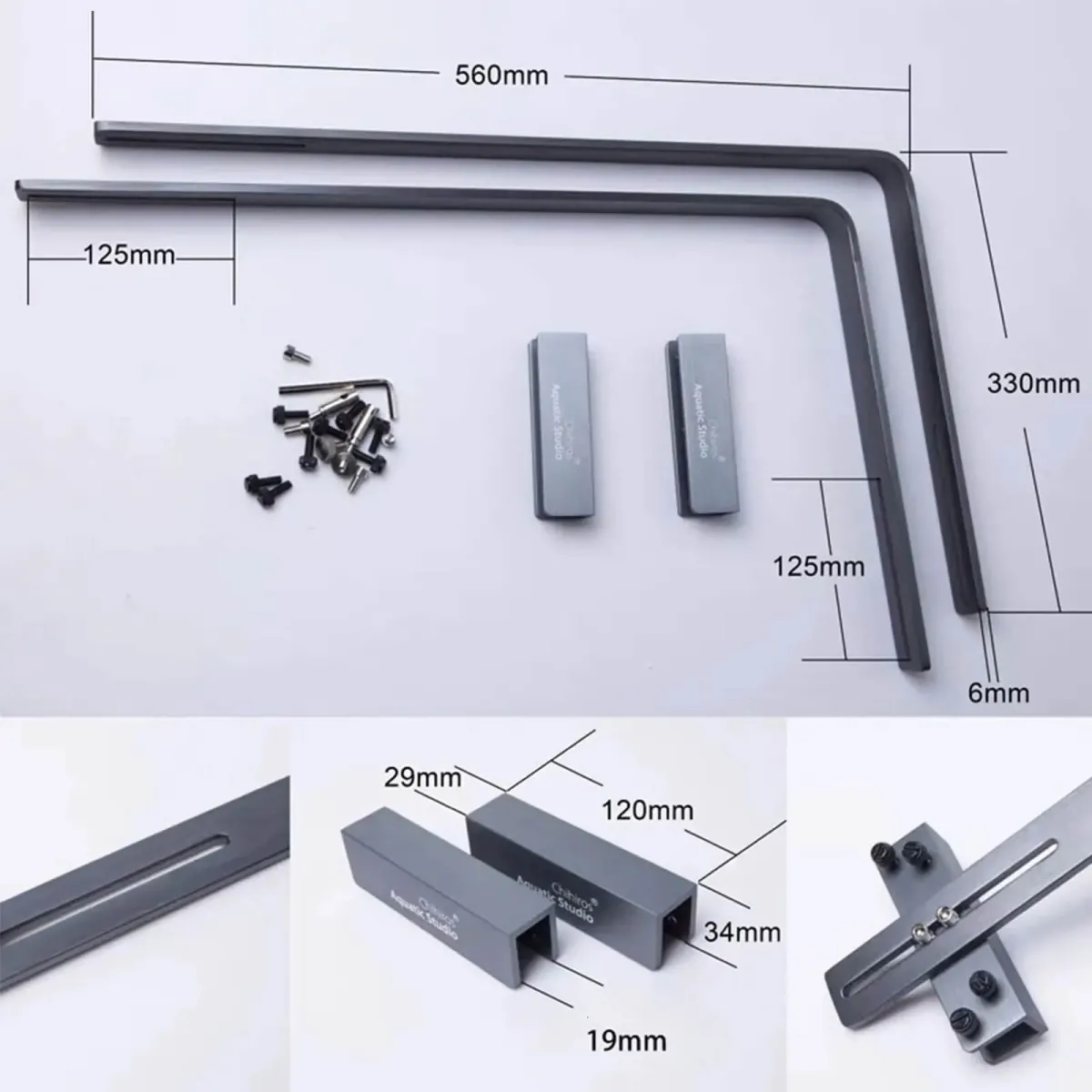 Il set include tutto il necessario per un’installazione semplice e veloce: 2 supporti, 2 piedini di supporto e tutte le viti necessarie. Tutto ciò che serve è un normale cacciavite per completare l'installazione. Il piede del kit di sospensione è compatibile con vetri fino a 19 mm di spessore, offrendo una soluzione stabile anche per gli acquari più grandi.