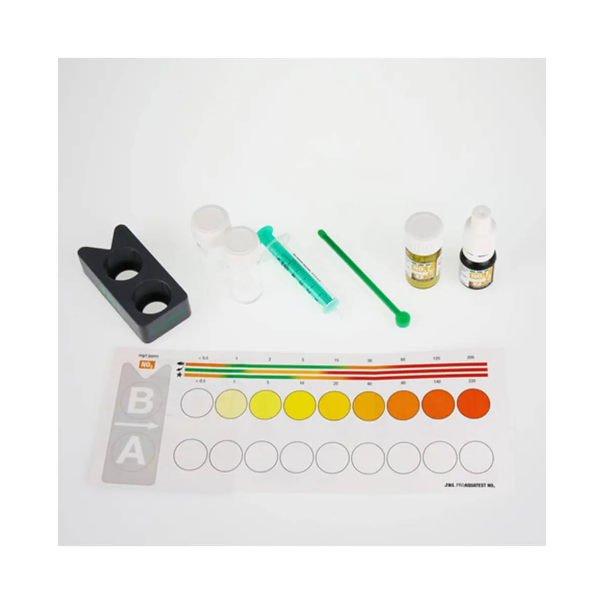 Contiene: 1 test nitrato per circa 40 misurazioni, con 2 reagenti, 2 provette di vetro con tappo avvitabile, cucchiaio dosatore, siringa, blocco comparatore e scala colorimetrica, sufficiente per circa 40 misurazioni.