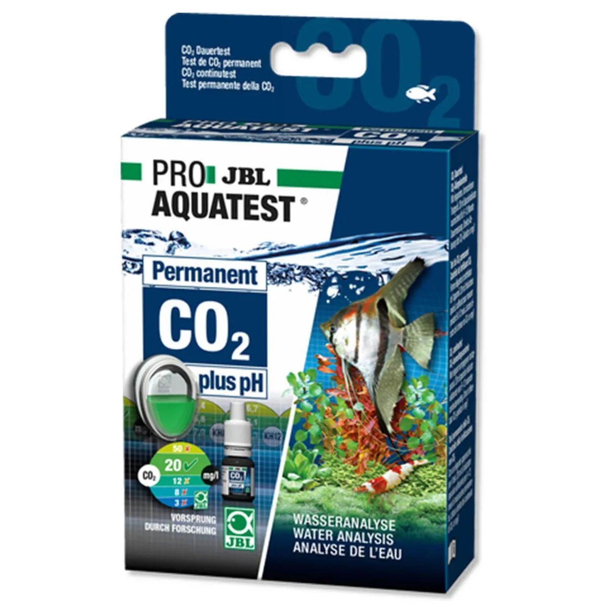 Test permanente per determinare l'acidità e il contenuto di anidride carbonica negli acquari d'acqua dolce, misurazione diretta permanente dell'ideale pH e del contenuto di anidride carbonica negli acquari d'acqua dolce.