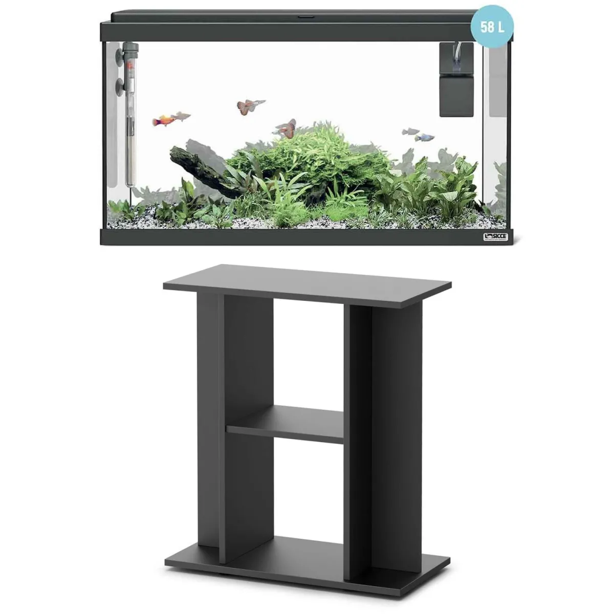 Sicce Acquario Moby Dick 60 New Nero - 58 Litri Completo di Accessori con Supporto